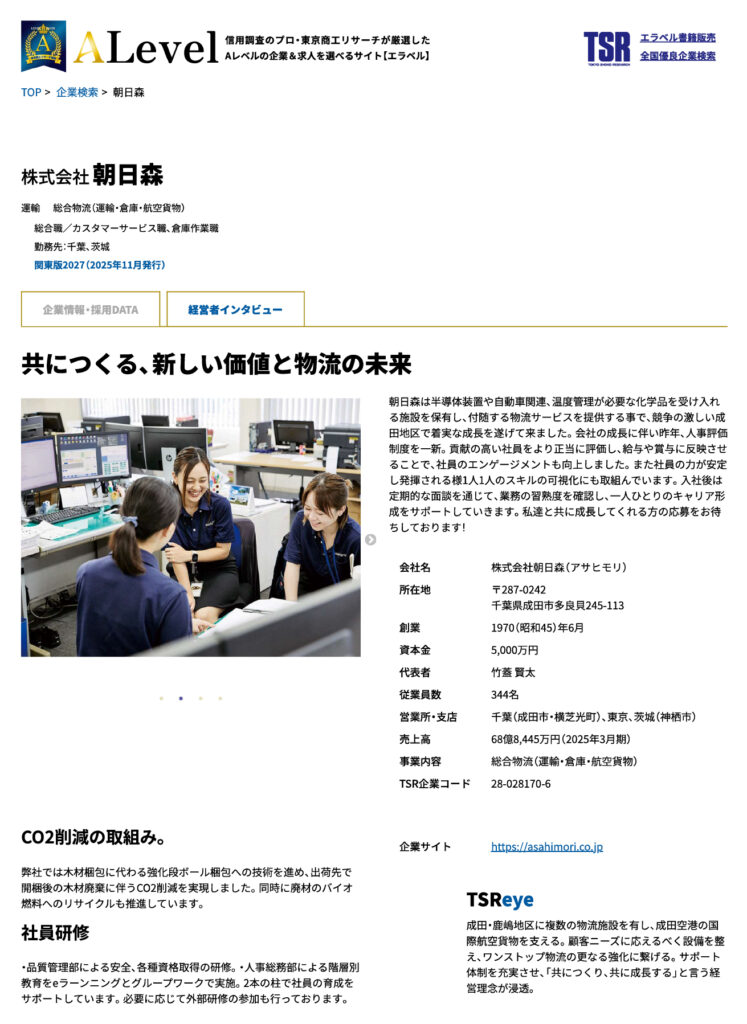 「ALevel(エラベル)」は、東京商工リサーチ社が発行する企業情報誌で、「Aレベルの会社を“選べる”」というコンセプトで、高評点企業のみ掲載できる地域密着の優良企業紹介誌です。